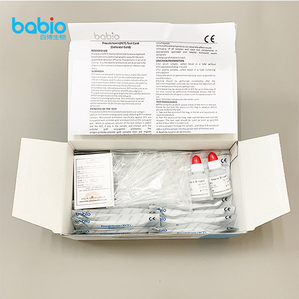 Procalcitonin (PCT) சோதனை அட்டை (Colloidal Gold) என்பது சீரம் அல்லது பிளாஸ்மாவில் மனித ப்ரோகால்சிட்டோனின் அரை அளவு கண்டறிதலுக்கான விரைவான மற்றும் வசதியான இம்யூனோக்ரோமடோகிராஃபிக் மதிப்பீடு ஆகும். இது கடுமையான பாக்டீரியா தொற்று மற்றும் செப்சிஸ் சிகிச்சையை கண்டறிவதில் ஒரு உதவியாக தொழில்முறை பயன்பாட்டிற்காக வடிவமைக்கப்பட்டுள்ளது.